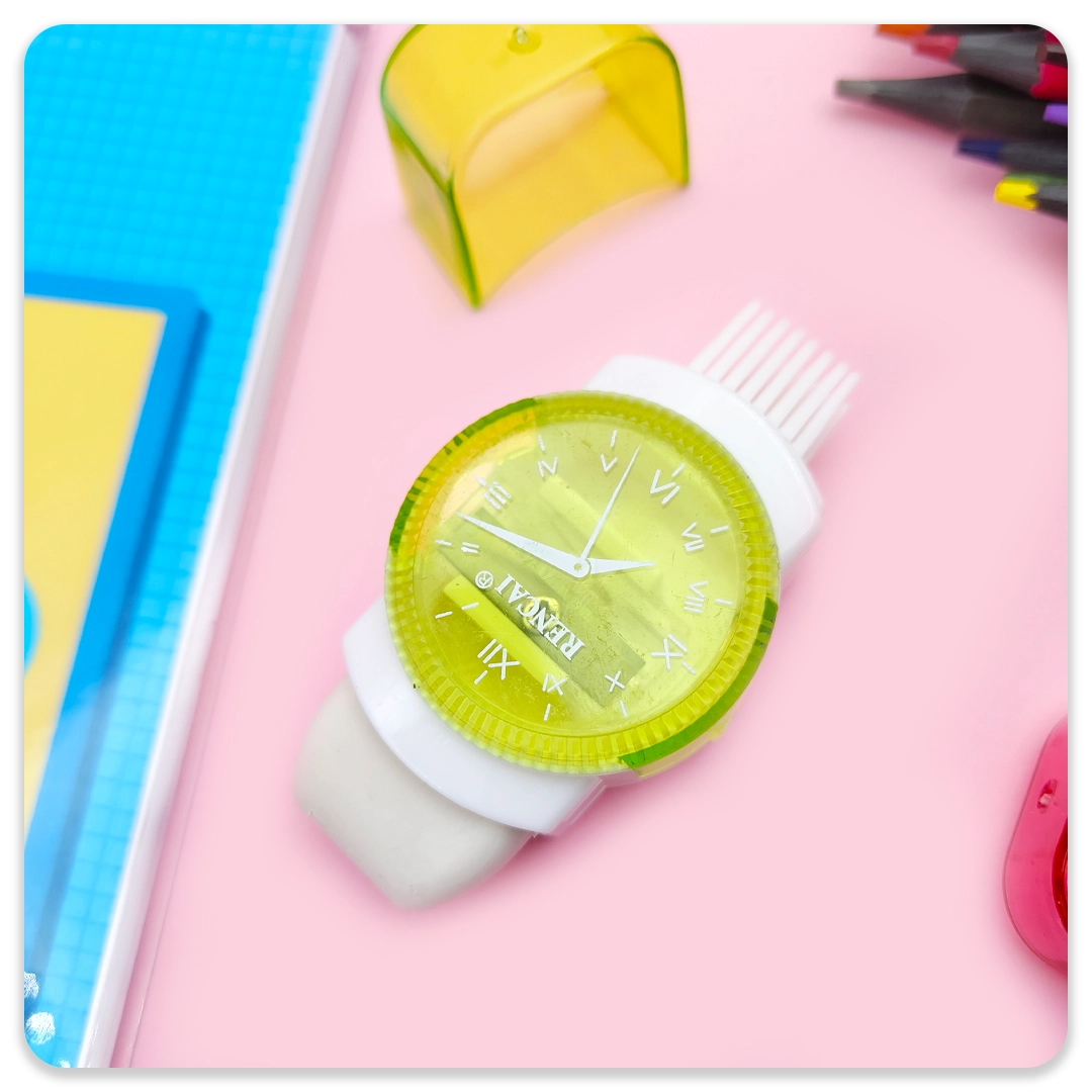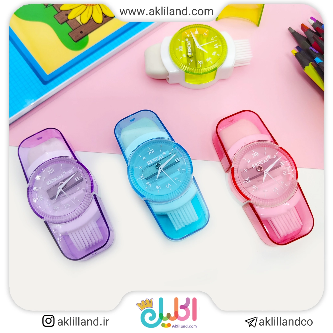 تراش سه کاره ساعت مچی؛ یک محصول با چندین کاربرد می باشد. این ساعت مصنوعی زیبا می تواند برای آموزش ساعت به کودکان استفاده شود. در یک سمت این تراش پاک کن وجود دارد و در سمت دیگر یک شانه با دندانه های کوتاه و نرم است. در قسمت وسط نیز تراش قرار گرفته که مخزن دار است. برای خرید این محصول چند کاره عجله کنید و قبل از اتمام موجودی همین حالا آن را به لیست سبد خرید خود اضافه کنید.