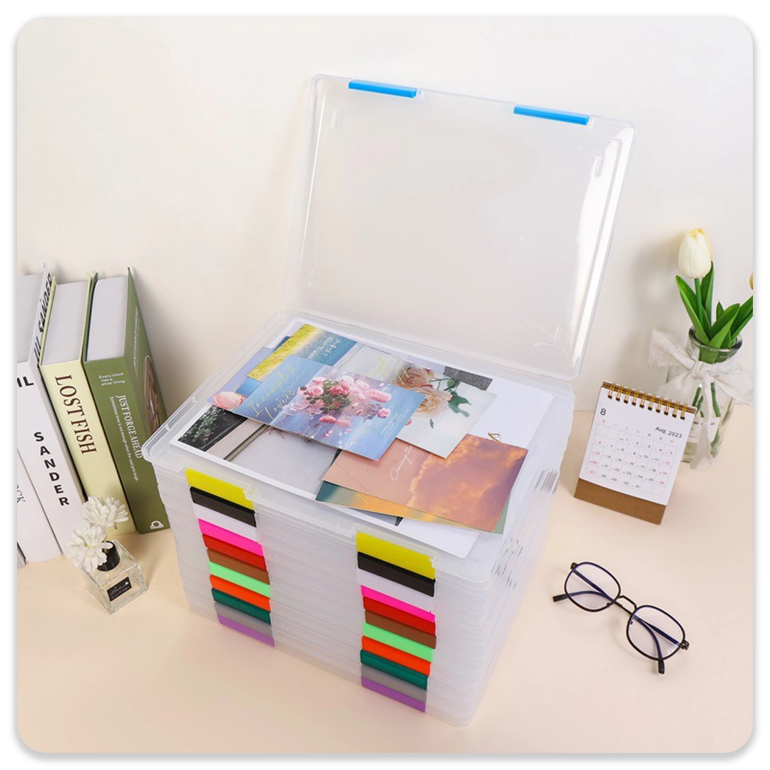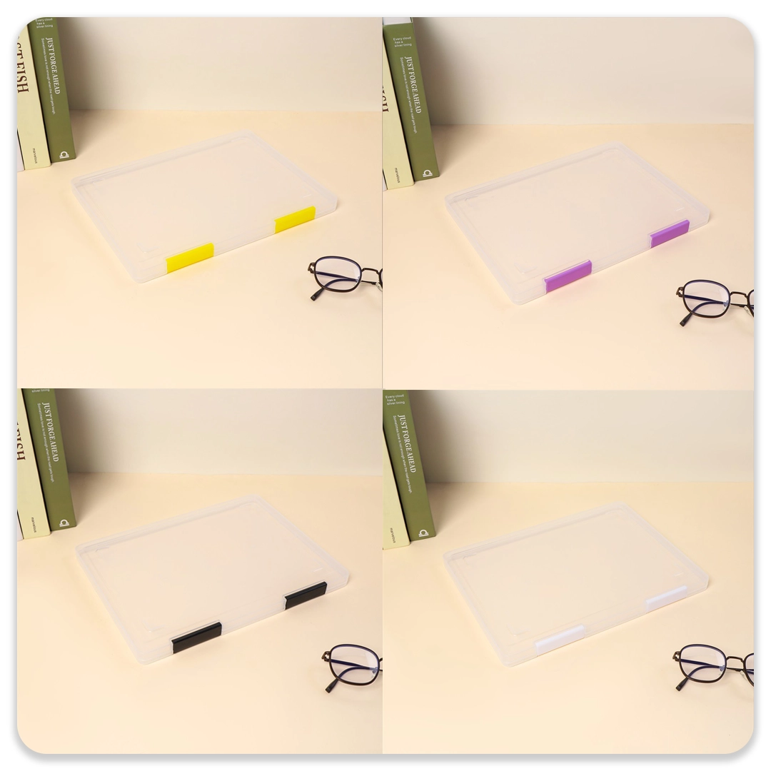یکی از بهترین راه ها برای نظم دادن به کاغذ و مدارک استفاده از فایل باکس هاست. فایل باکس سایز A4 که از جنس پلاستیک باکیفیت ساخته شده در رنگبندی های شاد و جذابی در اکلیل موجود است. به راحتی می توانید از هر رنگ برای مدارک منحصر به فردی استفاده کنید به این ترتیب دیگر نیازی به استفاده از برچسب و نشانه گذار نخواهید داشت و هر رنگ گویای محتوای درون خود می باشد.